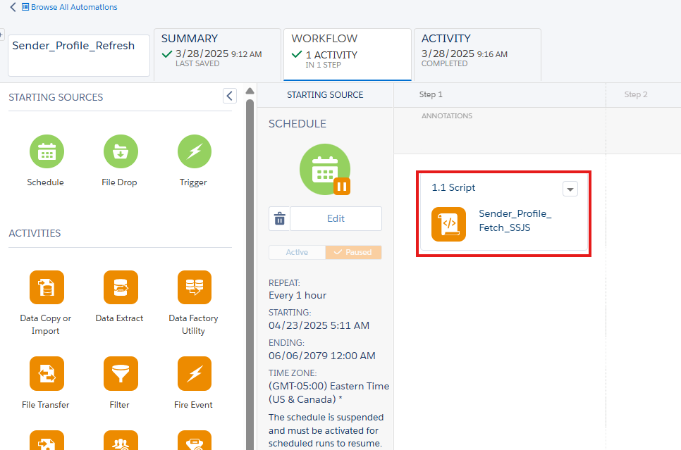 Script Activity to Retrieve Sender Profile Details and Upsert into Data Extension: